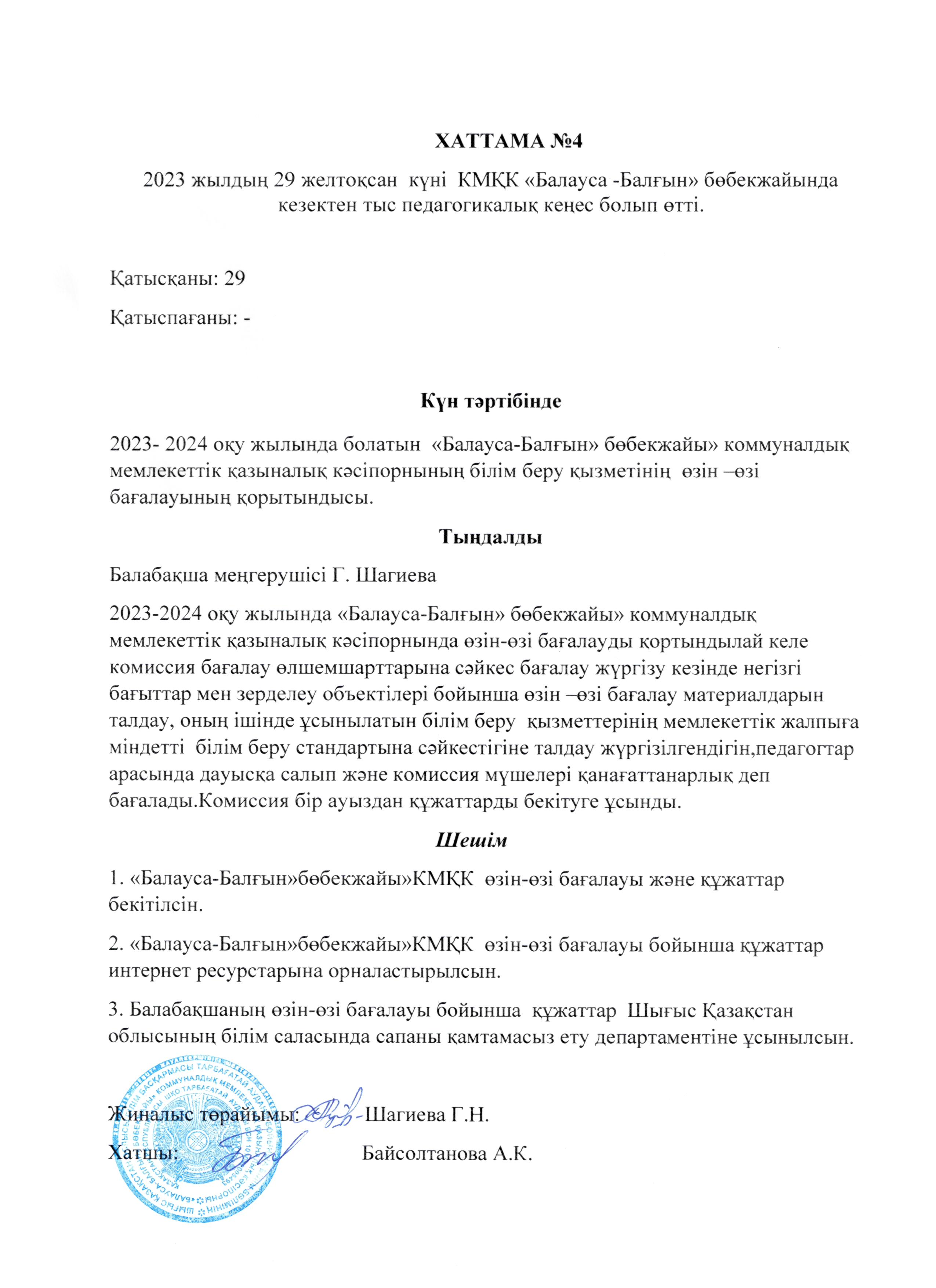 | 4 | Балбөбек циклограммасы наурыз 23 - 24 ож | |