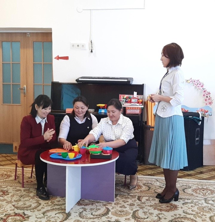 - Теориялық бөлім. Баяндама “Мектеп жасына дейінгі балаларды толыққанды дамыту”. Әдіскер Сабитова З.А.